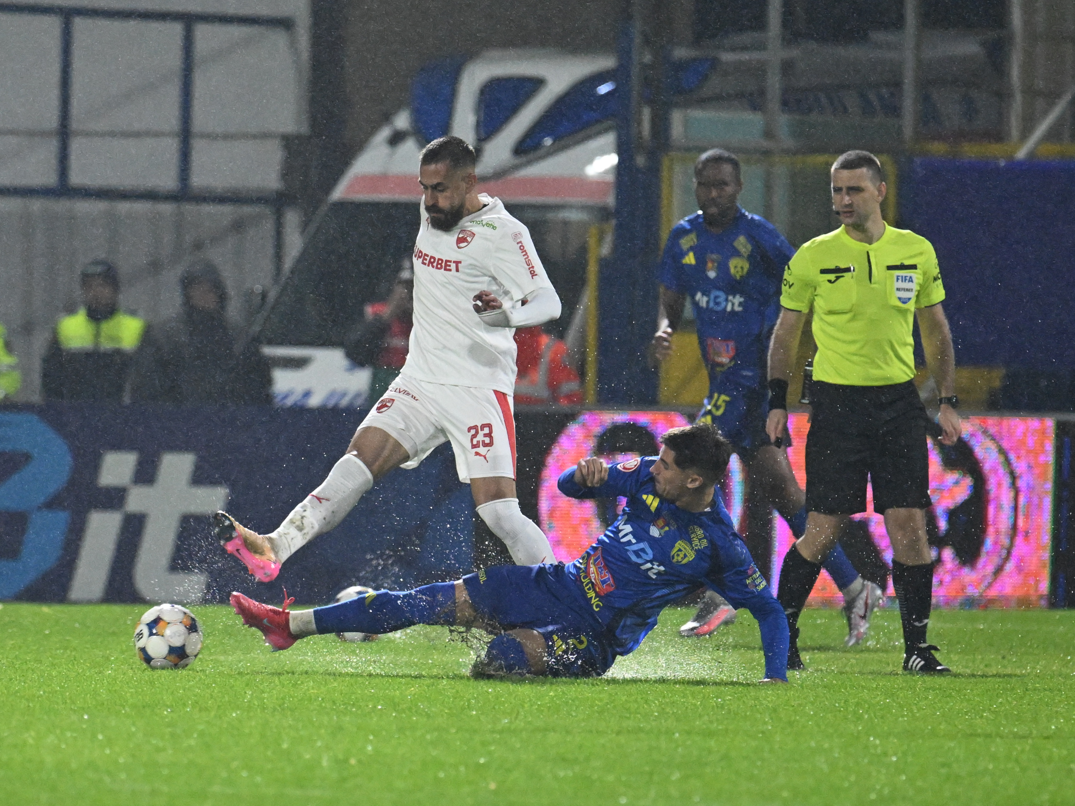 Unicul gol al meciului, desfăşurat pe un teren aproape impracticabil, cu bălţi pe alocuri, a fost înscris de croatul Stipe Perica (65), care a deviat în poartă mingea şutată de Andrei Mărginean. Dinamo a mai înscris o dată, prin Alexandru Musi (76), dar golul a fost anulat de VAR pentru un henţ comis în prealabil de Alberto Soro.