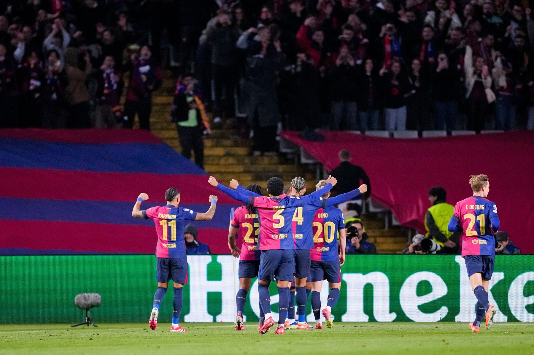 Catalanii au deschis scorul după 11 minute, prin Raphinha, după o pasă a lui Lamine Yamal.