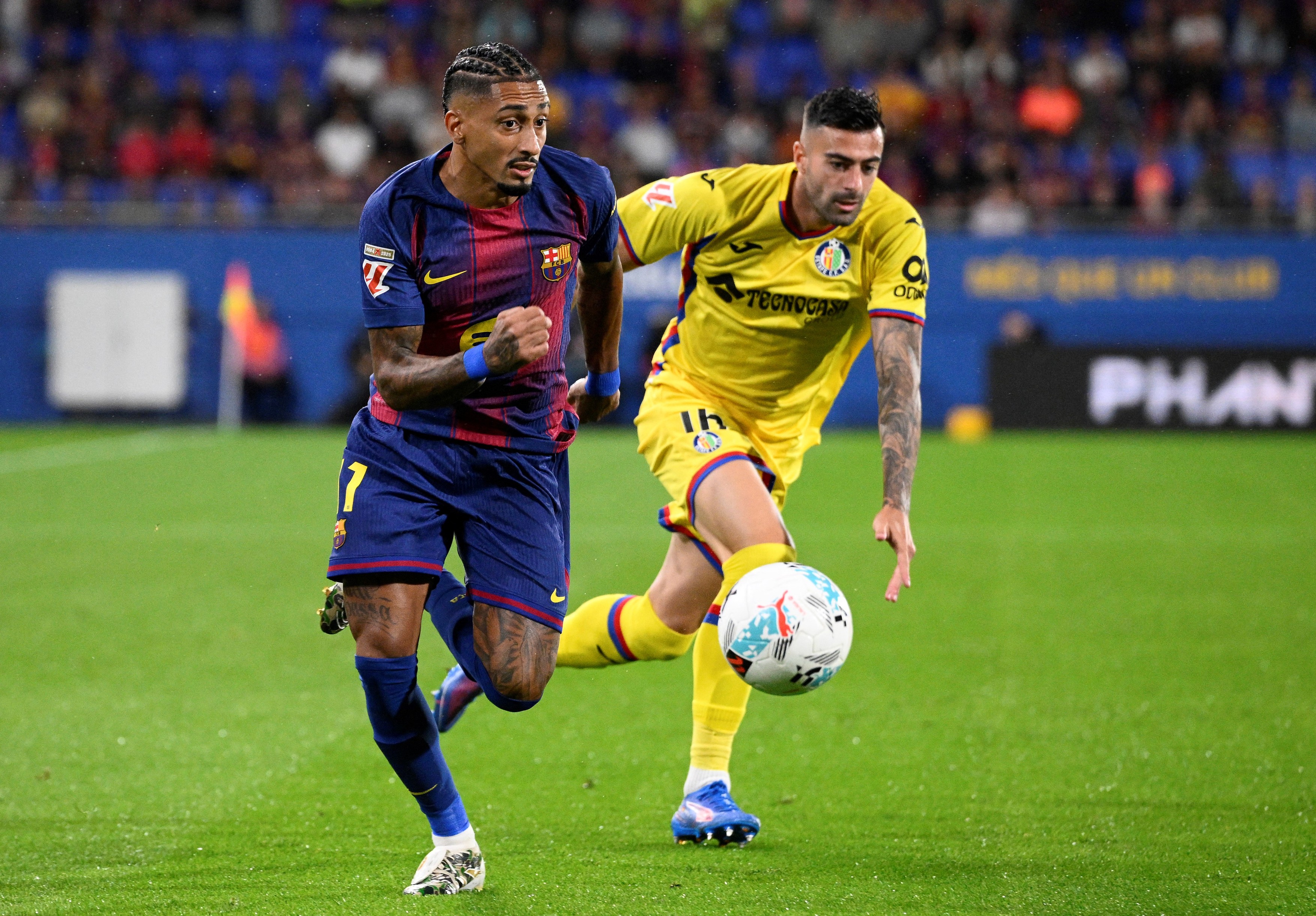 Min. 35: Gool Barcelona! Raphinha l-a găsit perfect pe Torres, care nu l-a iertat pe Soria. 2-0.