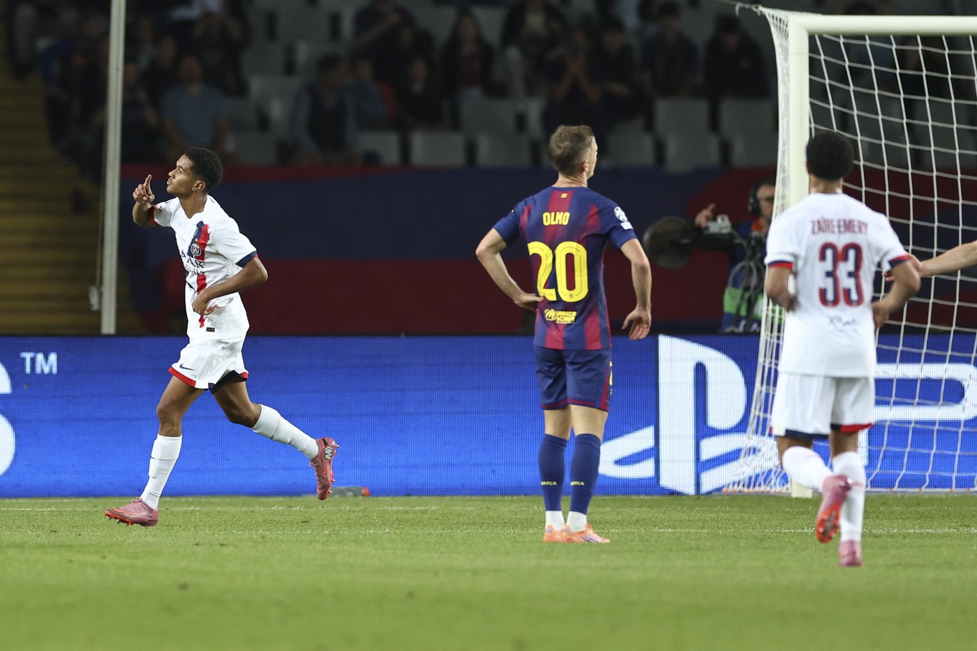 Torres (19) și-a trecut până la urmă numele pe lista marcatorilor și a deblocat tabela, în urma unui assist al lui Rashford. PSG a restabilit echilibrul până la pauză, grație reușitei lui Mayulu (38), după o cursă a lui Nuno Mendes. Ambele formații au mai trecut pe lângă gol, însă au intrat la egalitate la cabine.