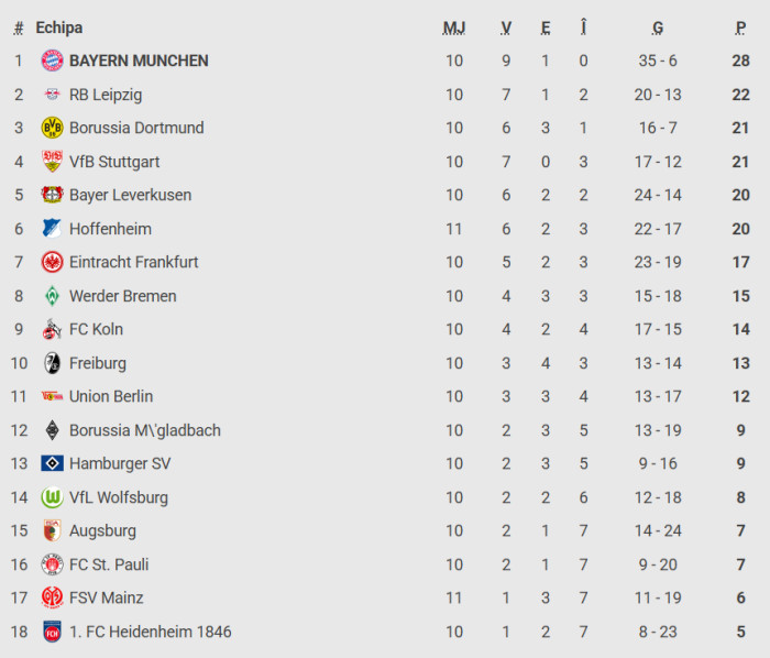 Clasament Bundesliga