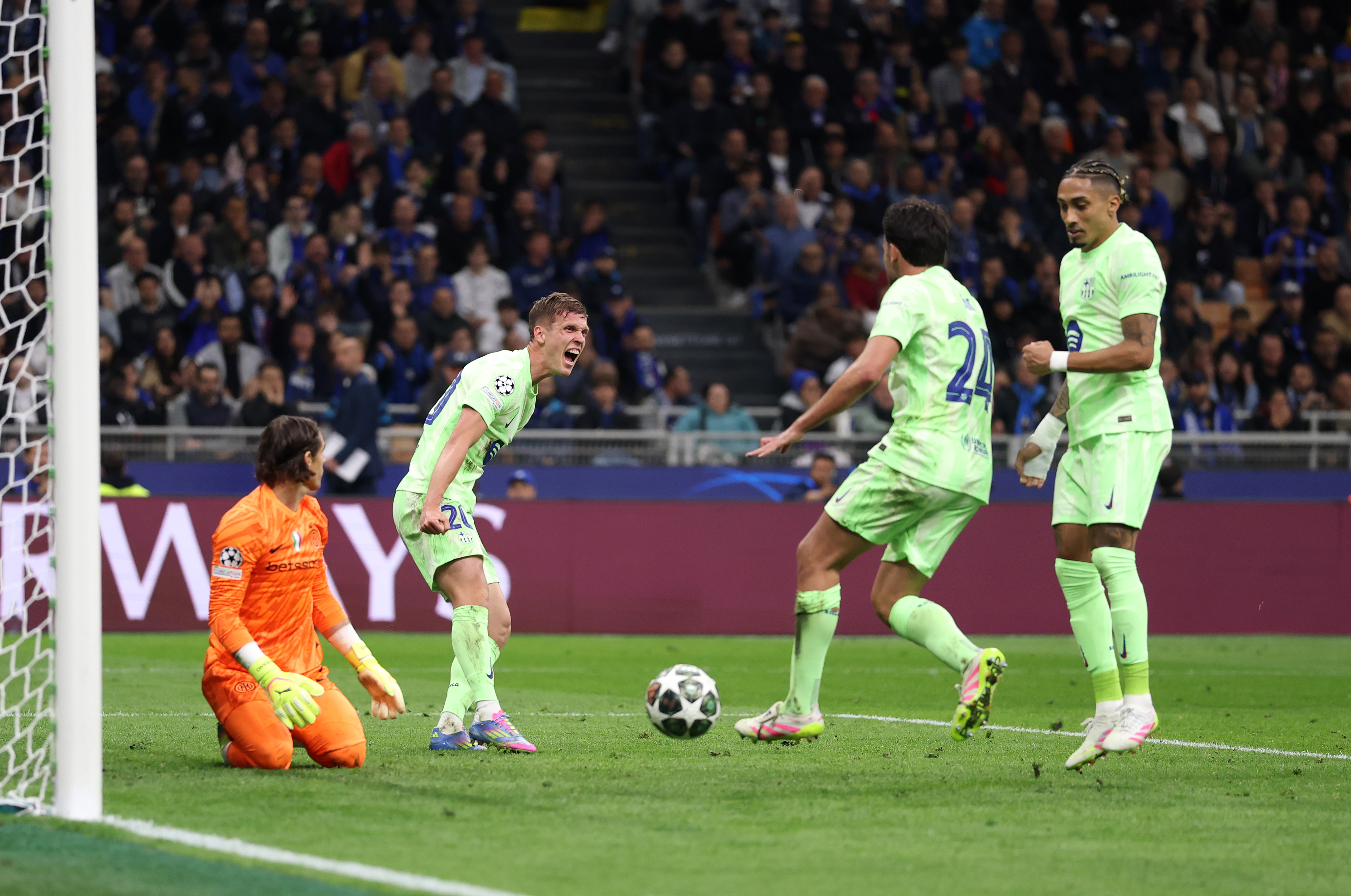Gerard Martin a trimis în careu, iar Olmo l-a învins cu o lovitură de cap pe Sommer. După ce a marcat, fotbalistul spaniol s-a bucurat alături de colegii săi și ulterior a pupat sigla Barcelonei de pe tricou.