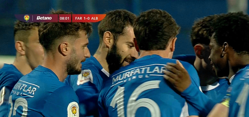 Min. 8 – Goool Farul: 1-0, Ciobanu! Fotbalistul ”Marinarilor” a executat foarte bine o lovitură liberă, de la aproximativ 20 de metri, lateral stânga.