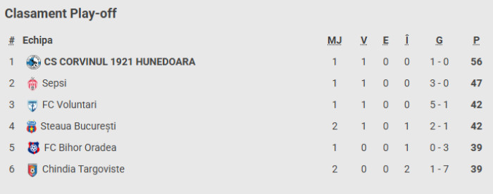 Clasament play-off Liga 2