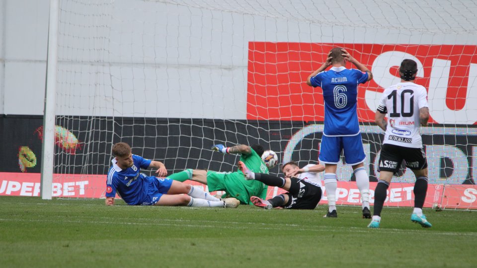 Min. 76: GOOOL Craiova! Blănuță rămâne la mingea după un duel aerian în careul oaspeților și reia cu stângul, lângă bară.