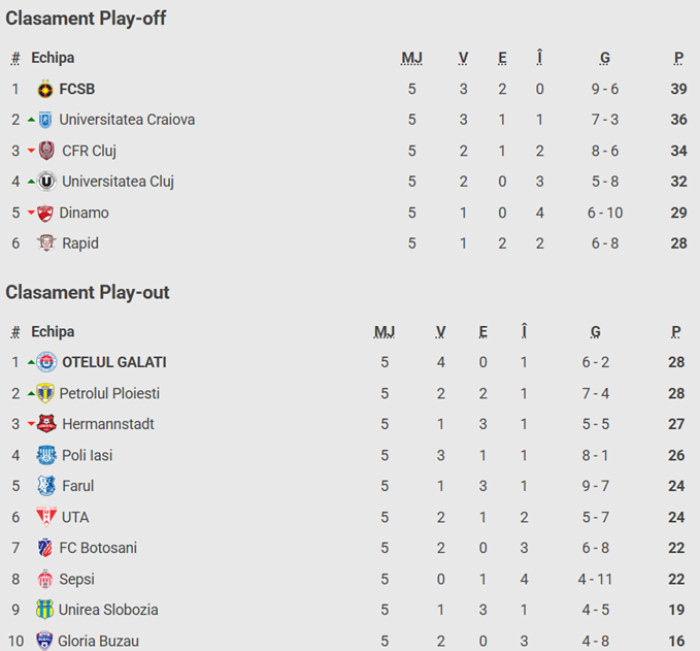 Clasamentul play-off-ului și play-out-ului