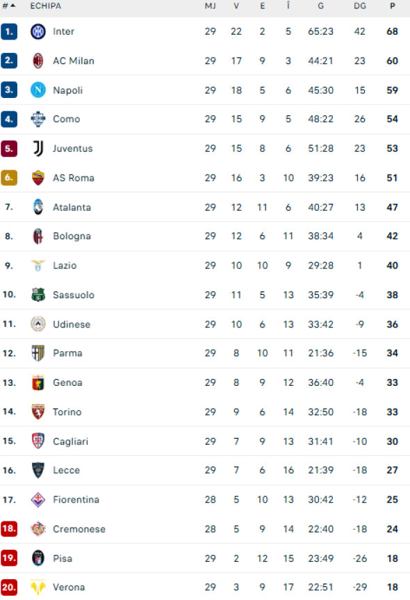 Clasamentul din Serie A