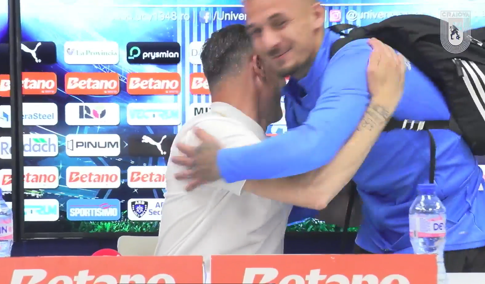 S-a îndreptat spre Rădoi, l-a luat în brațe și i-a urat vacanță plăcută, moment în care Rădoi a replicat: ”La fel. Sper să nu te mai văd”. Ulterior, antrenorul oltenilor a început să râdă.