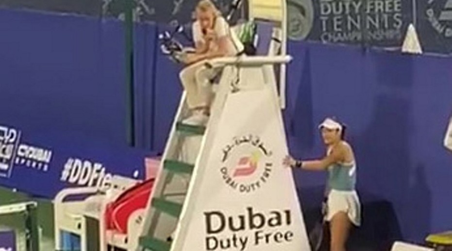 Jucătoarea în vârstă de 22 de ani a stat în spatele scaunului oficialului în timp ce spectatorul a fost escortat afară.