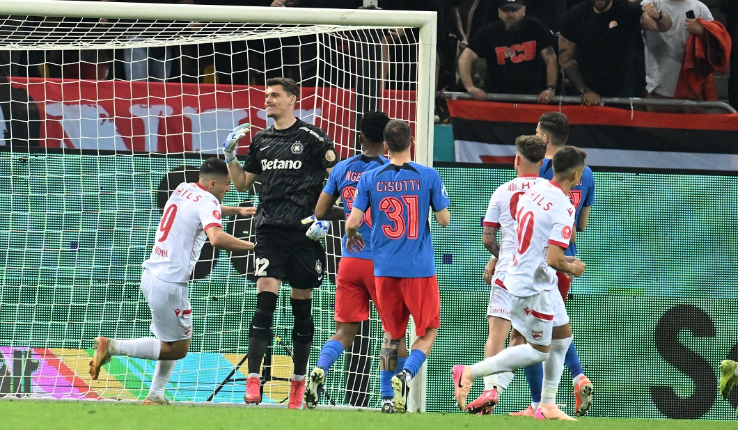 În repriza a doua, disputa de luni seara, de pe Arena Națională, s-a mai echilibrat, mai ales după golul de onoare marcat de către ”Câini”.