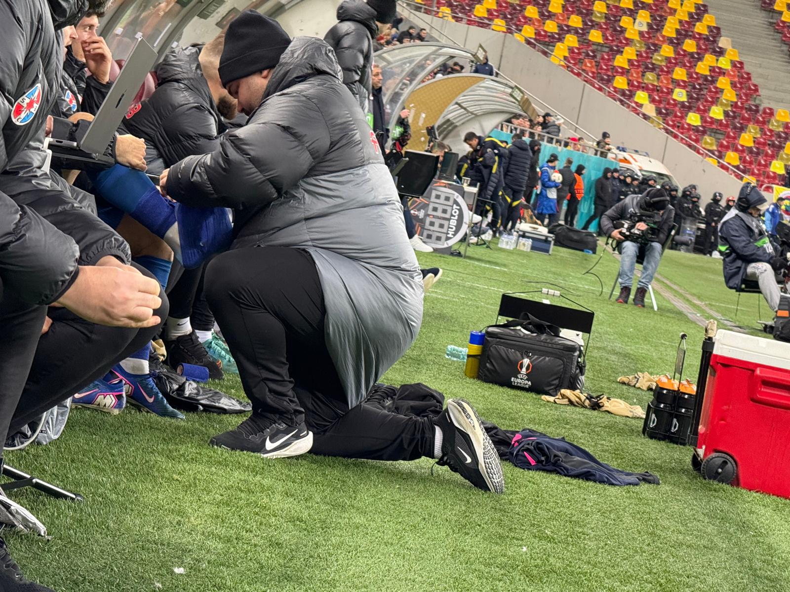 Imediat după ce a părăsit suprafața de joc, Darius Olaru a fost bandajat și i s-a aplicat o compresă cu gheață pe glezna piciorului drept.
