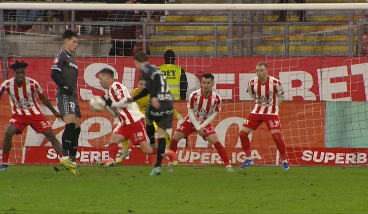 Pe imagini se poate observa cum Pospelov are brațul lipit de corp. Din camera VAR, arbitrul Iulian Dima i-a recomandat lui Colțescu să revadă faza la VAR.