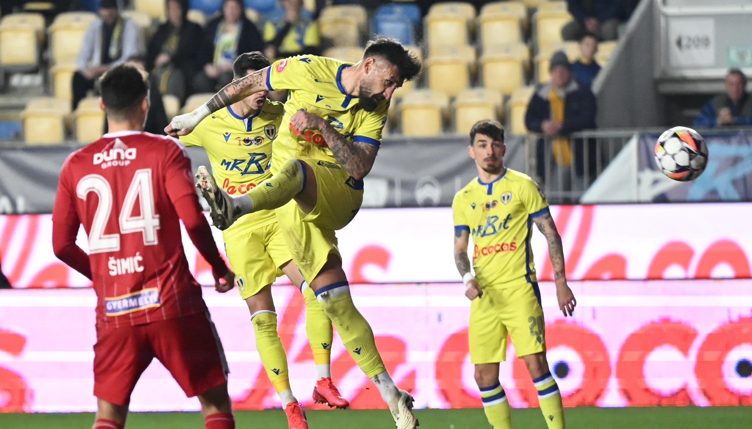 Prima ocazie a acestui meci le-a aparținut ”Lupilor Galbeni” în minutul 22, când veteranul Paul Papp a reluat periculos cu capul pe spațiul porții, dar Niczuly a fost la post.