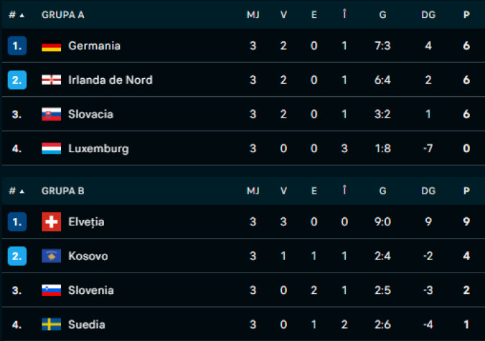 - Suedia – Kosovo (Grupa B), 21:45, în direct pe Digi Sport 4