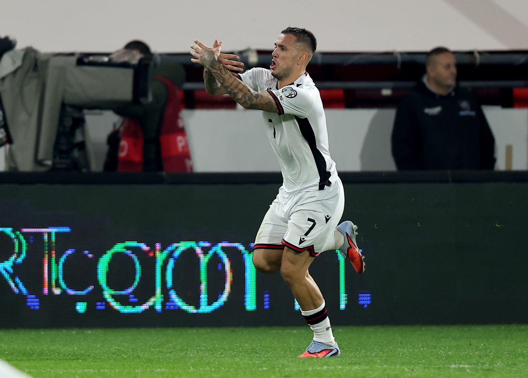 După ce a marcat, atacantul de la Sharjah a făcut un gest care a inflamat spiritele în Serbia. A făcut cu mâinile simbolul vulturului albanez și publicul a ”explodat” și a început cu scandări scabroase împotriva albanezilor.