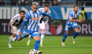 Min. 9: Universitatea Craiova – U Cluj 1-0! Alexandru Mitriţă a deschis scorul, după ce a transformat perfect un penalty. Lovitura de pedeapsă a fost dictată, după intervenţia VAR-ului.