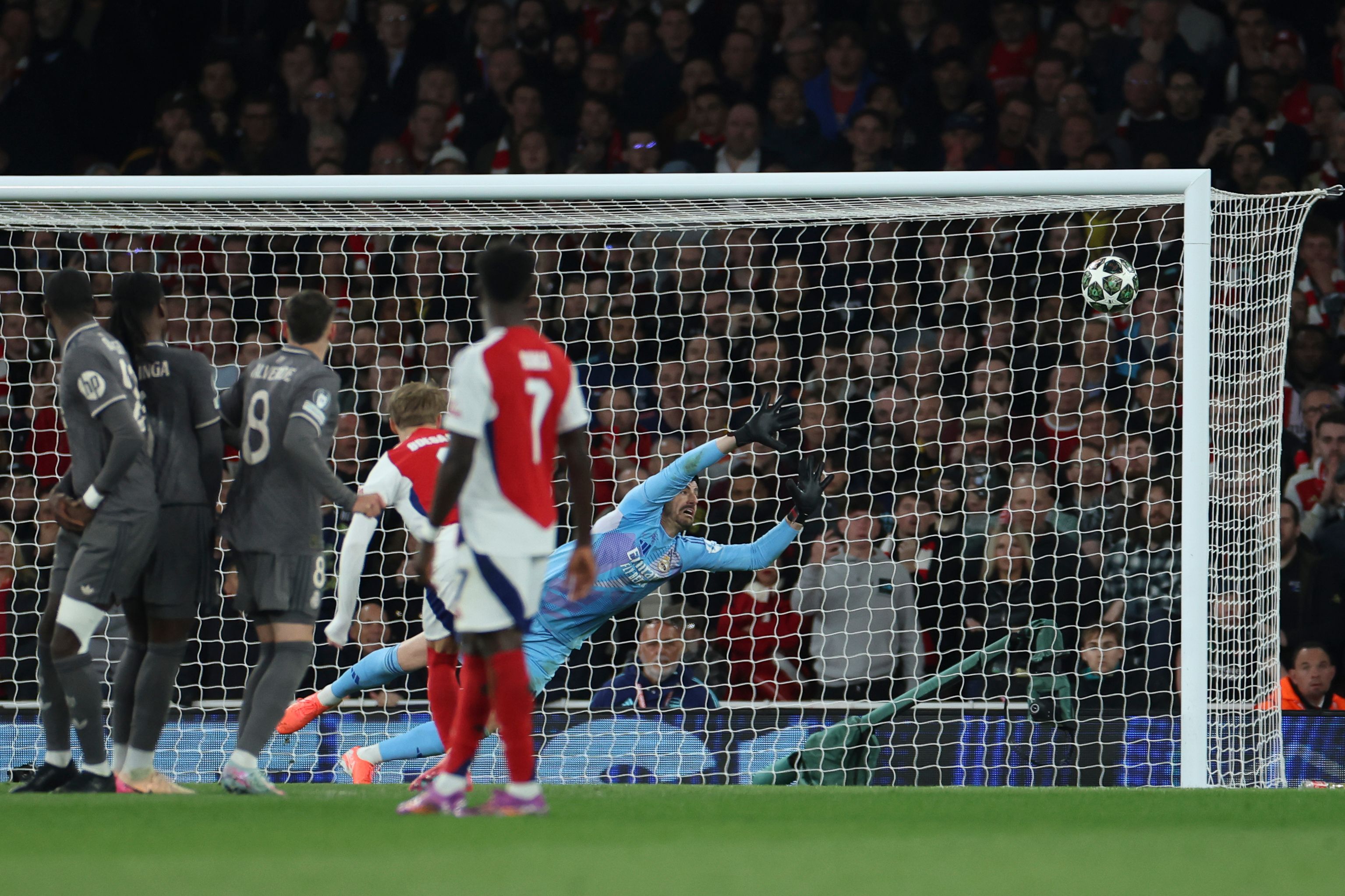 Totuși, jurnaliștii spanioli au apreciat evoluția lui Courtois de pe Emirates, deoarece belgianul a avut mai multe intervenții salvatoare. Portarul de 32 de ani a primit nota 9 de la site-ul Defensa Central, în timp ce majoritatea celorlalți nu au trecut clasa. De asemenea, Managing Madrid i-a dat nota 8,5: „Senzațional. A făcut tot ce-a putut ca s-o țină pe Real în viață, inclusiv cu o triplă paradă incredibilă în prima repriză”.