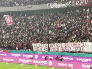 Mai mult, acţionarul minoritar al giuleştenilor a fost comparat cu dictatorul Nicolae Ceauşescu, dar au avut şi o serie de bannere jignitoare.